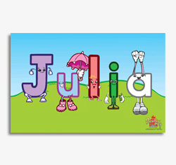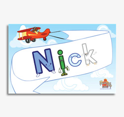 11 x 17 inches, laminated finish for easy clean up. Customized with a child's name or favorite character(s) from the Meet the Letters DVD.