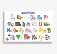 11 x 17 inches, laminated finish for easy clean up. Compliments the Meet the Letters DVD.